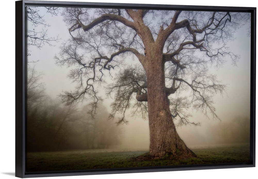<p>Docor wall art for the home or office an ancient tree stands alone in a misty field in this landscape photograph.</p>