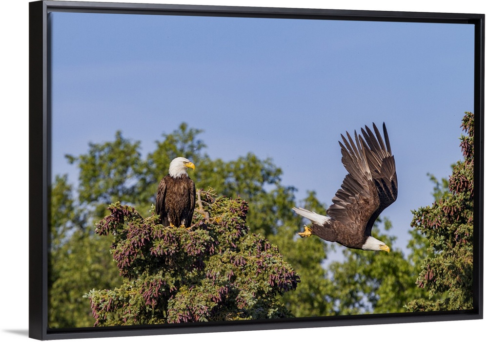 <p>Mated bald eagle (Haliaeetus leucocephalus) pair on nest near the Brooks River, Katmai National Park, Alaska, United States of America</p>
