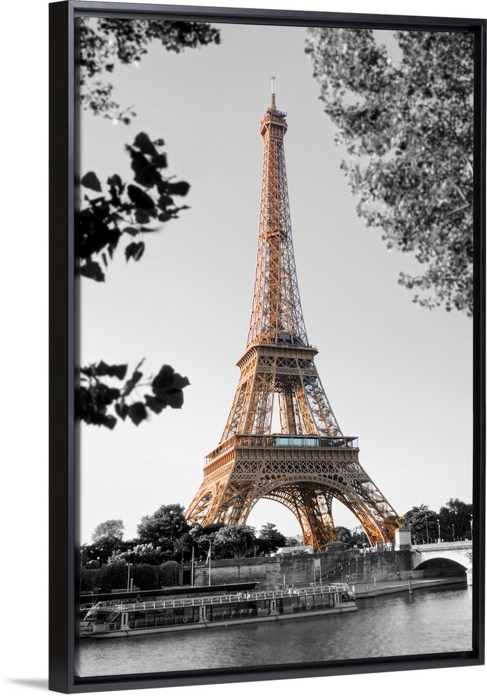 <p>Photograph of the Eiffel Tower with the background in black and white.</p>