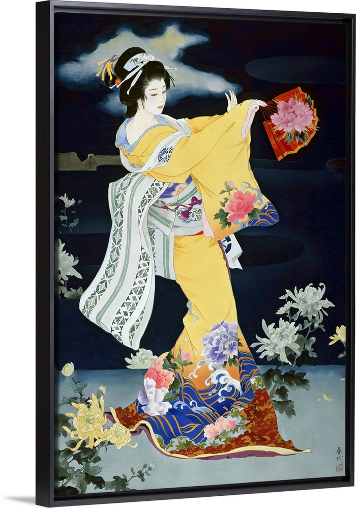 <p>Contemporary colorful Asian art of a Geisha in beautiful ornate clothing.</p>