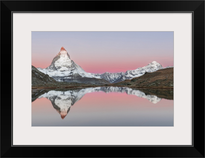 <p>Matterhorn with reflection in the water of Riffelsee lake, Gornergrat, Zermatt, Valais, Switzerland (MR)</p>