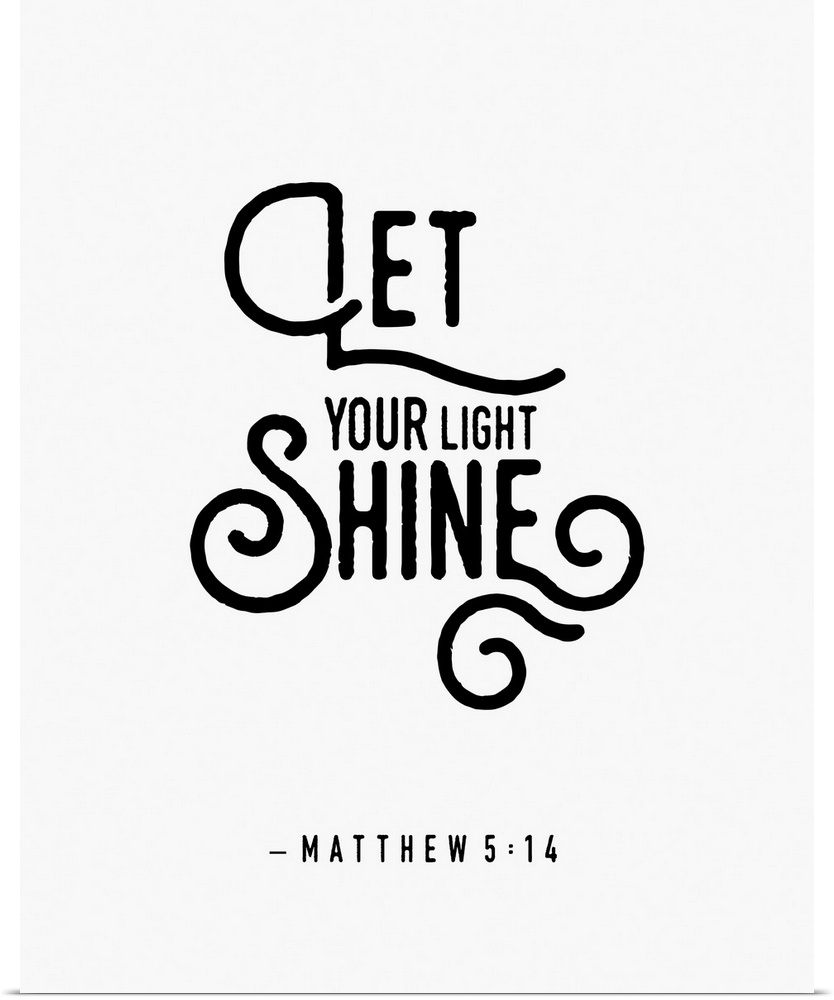 <p>Handlettered Bible verse reading Let your light shine.</p>