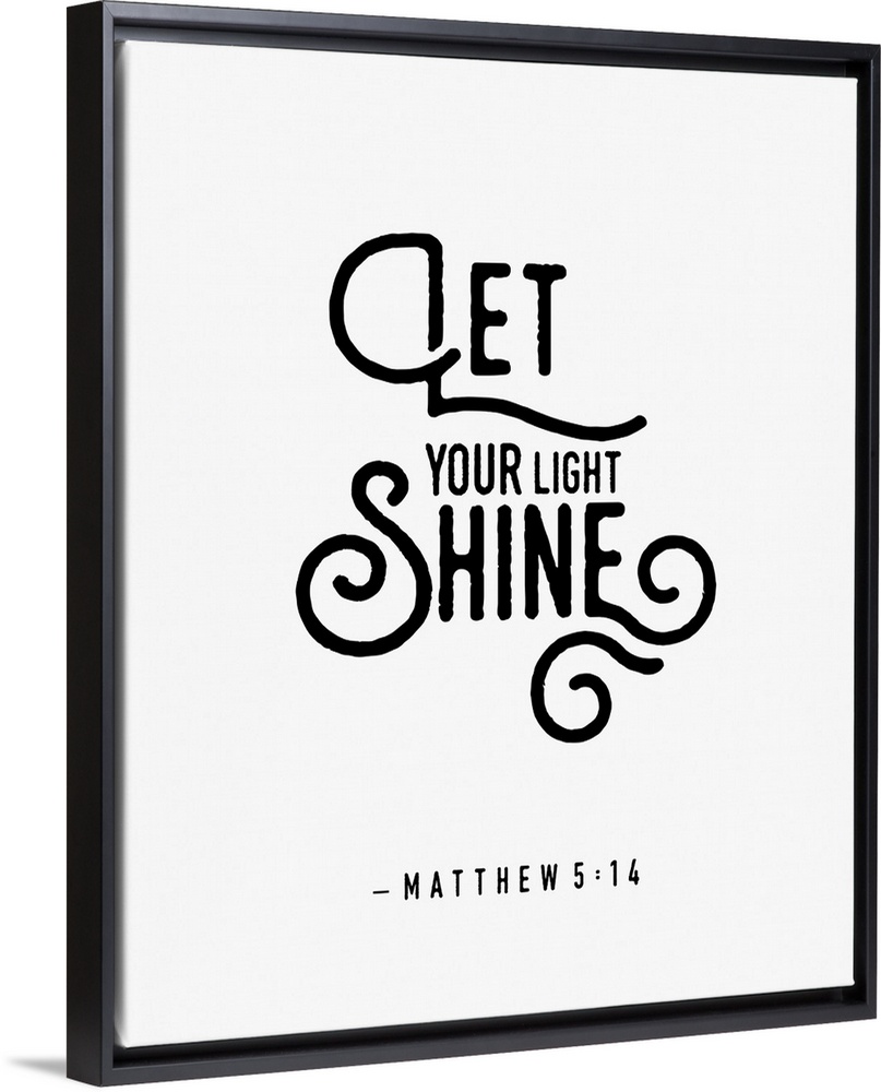 <p>Handlettered Bible verse reading Let your light shine.</p>