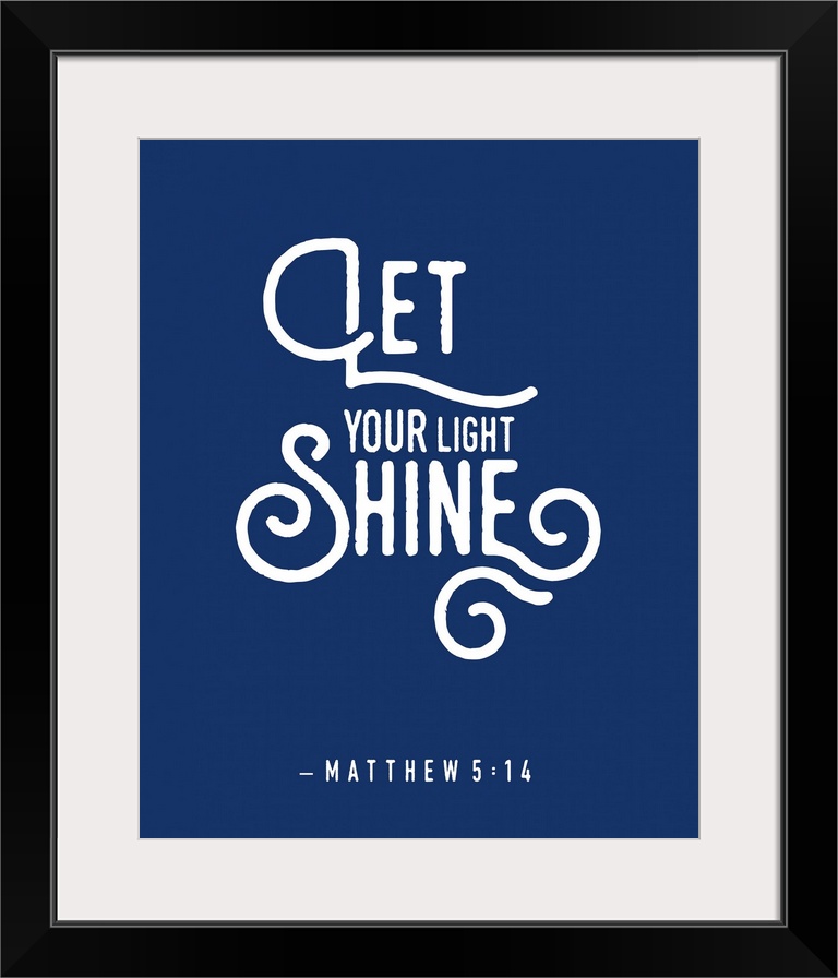 <p>Handlettered Bible verse reading Let your light shine.</p>