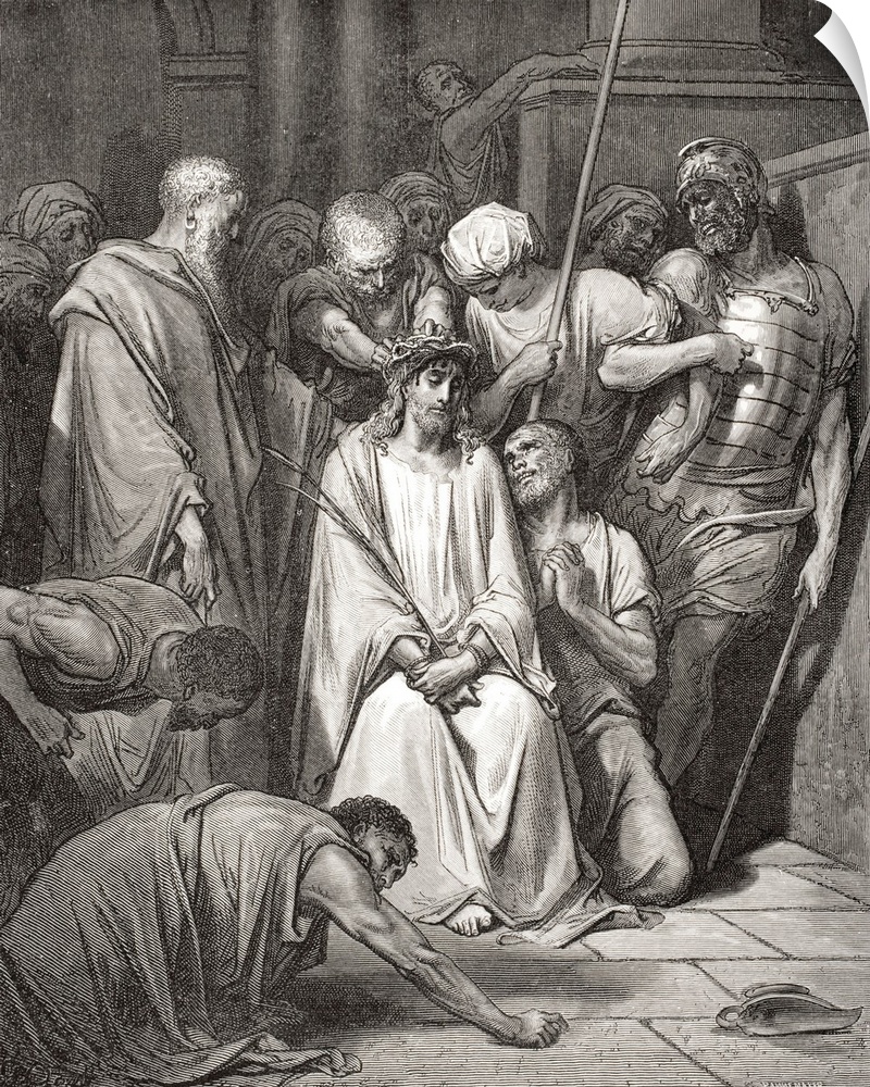 <p>Engraving From The Dore Bible Illustrating Matthew XXVII, 29 And 30, The Crown Of Thorns, By Gustave Dore, 1832-1883, French Artist And Illustrator.</p>
