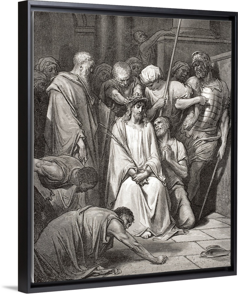 <p>Engraving From The Dore Bible Illustrating Matthew XXVII, 29 And 30, The Crown Of Thorns, By Gustave Dore, 1832-1883, French Artist And Illustrator.</p>