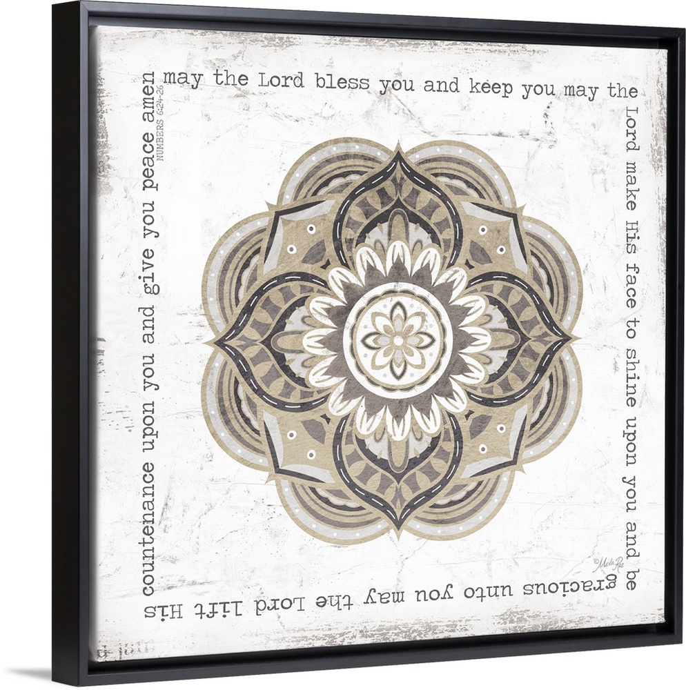 <p>Floral mandala design in muted earth tones, framed by a written prayer.</p>
