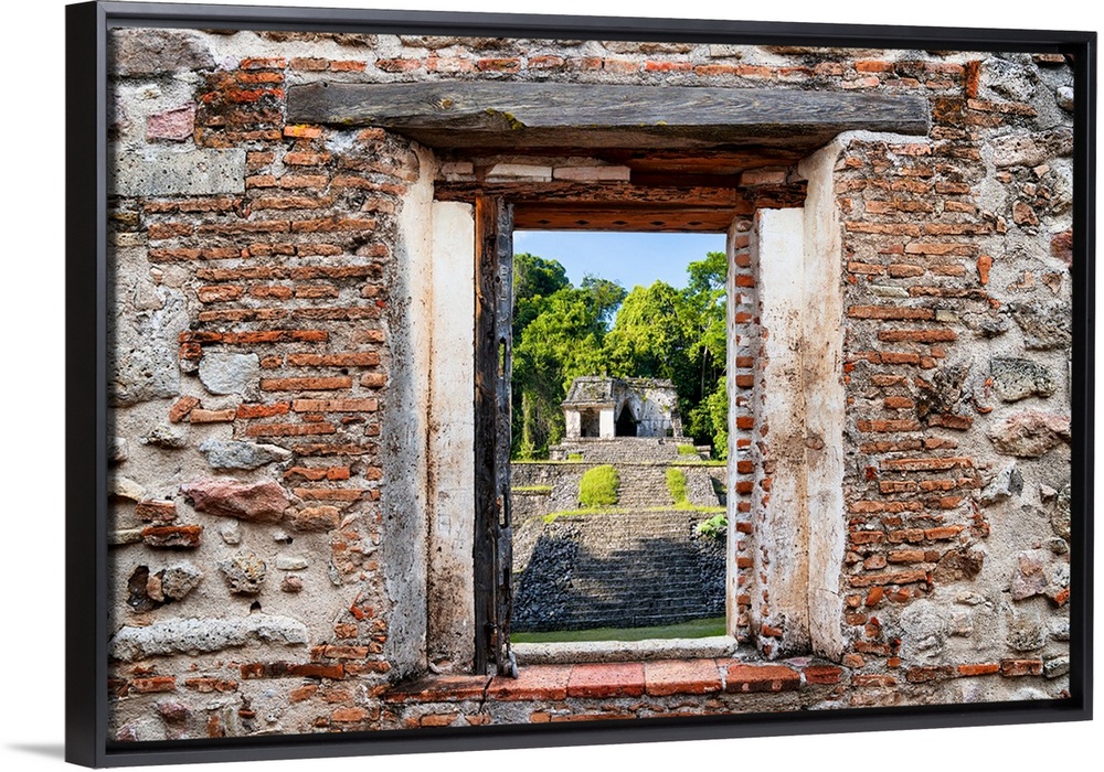 <p>View of the Mayan Ruins in Palenque framed through a stony, brick window. From the Viva Mexico Window View.</p>