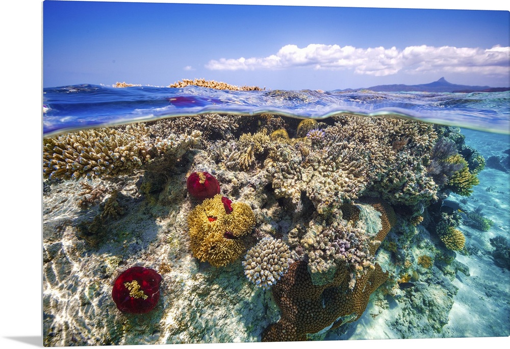 <p>C'eest ca Mayotte, un lagon magnifique, le deuxieme lagon ferme du monde en superficie. La particularitee de cet ile est son fort marnage. Il est de 4m, c'est pour cela que lors des grandes mare comme celle-ci, les coraux sortent de l'eau pendant plusieurs heures. En arriere plan, on peut apercevoir le mont Choungi.</p>