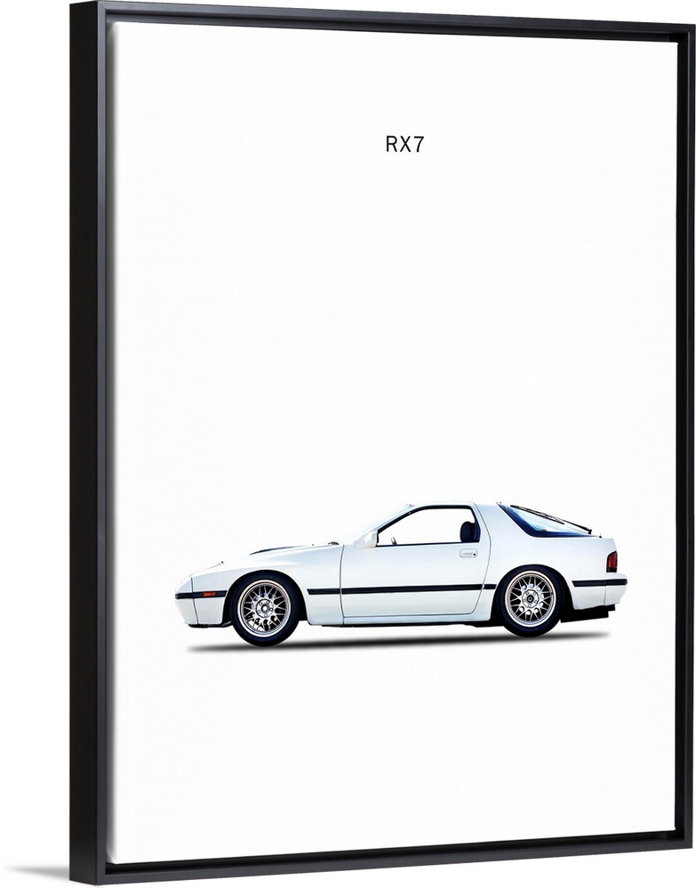 <p>Photograph of a white Mazda RX7 1988 printed on a white background</p>