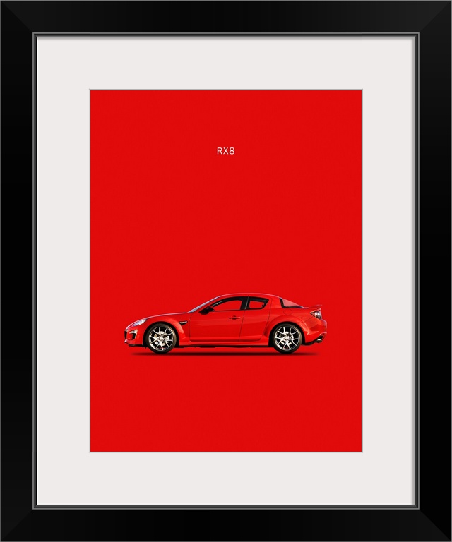 <p>Photograph of a red Mazda RX8 printed on a red background</p>