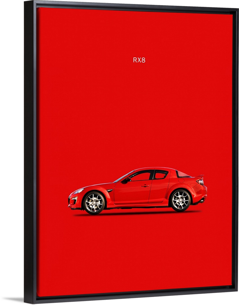 <p>Photograph of a red Mazda RX8 printed on a red background</p>