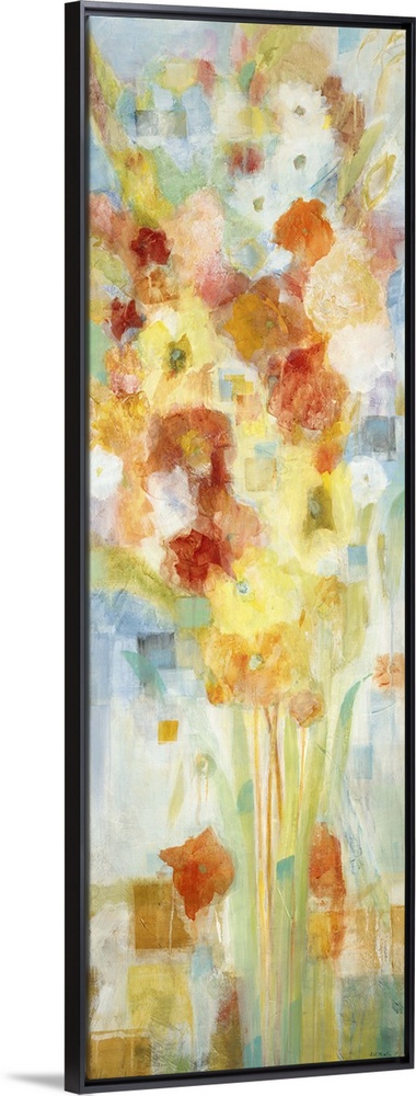 <p>A contemporary painting of flowers in red orange and yellow tones.</p>