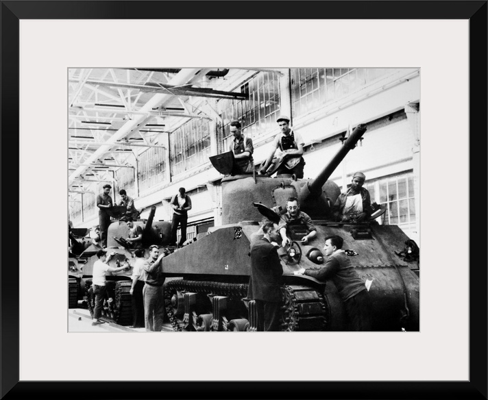 <p>Mechanics working on M-4 tanks at a Ford Motor Company munitions plant. Photograph, 1942.</p>