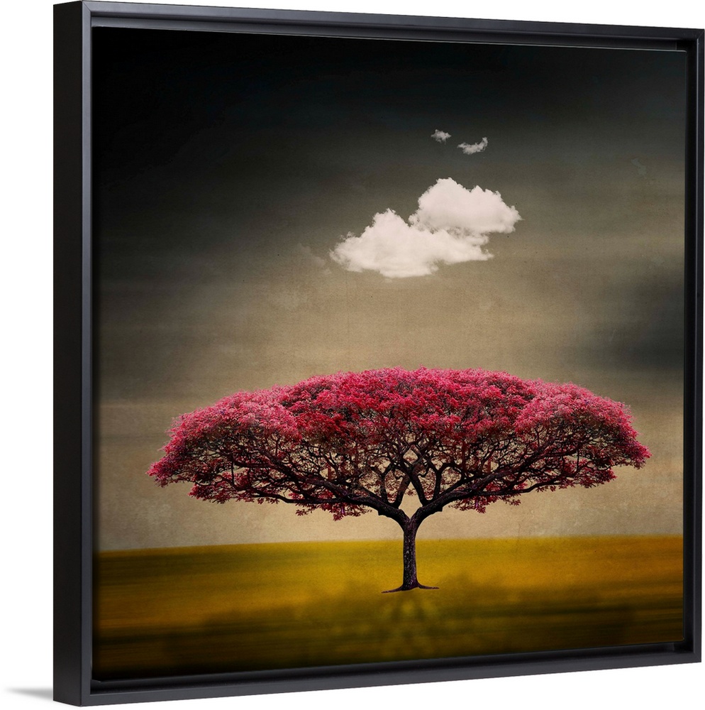 <p>This art work is a digital composite of a symmetrical flowering tree with a fluffy cloud floating above.</p>