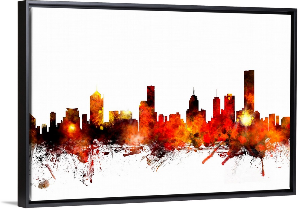 <p>Contemporary piece of artwork of the Melbourne skyline made of colorful paint splashes.</p>