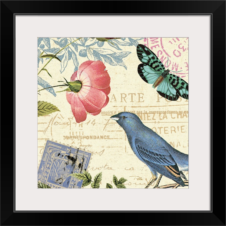 <p>Contemporary artwork of a collage of images with a bird and flowers.</p>