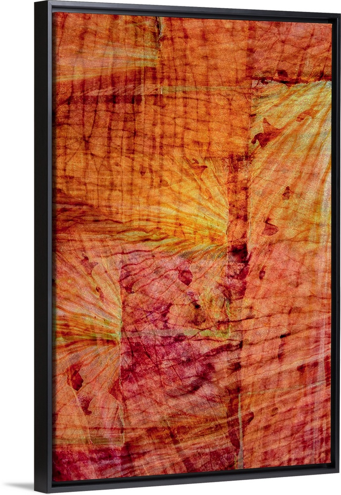 <p>Abstract art in shades of red, orange, and yellow with a faded wood grain background and a dreamlike overlay.</p>