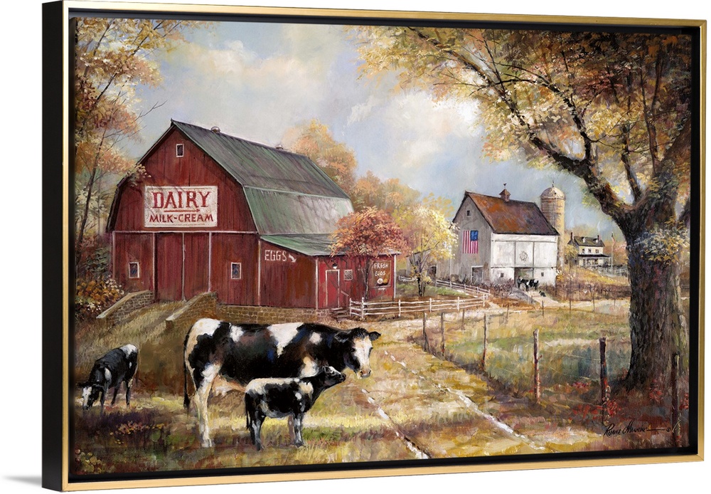 Art Decorative Art Landscapes Barn Countryside Ruane Manning Painting Wildlife Cow