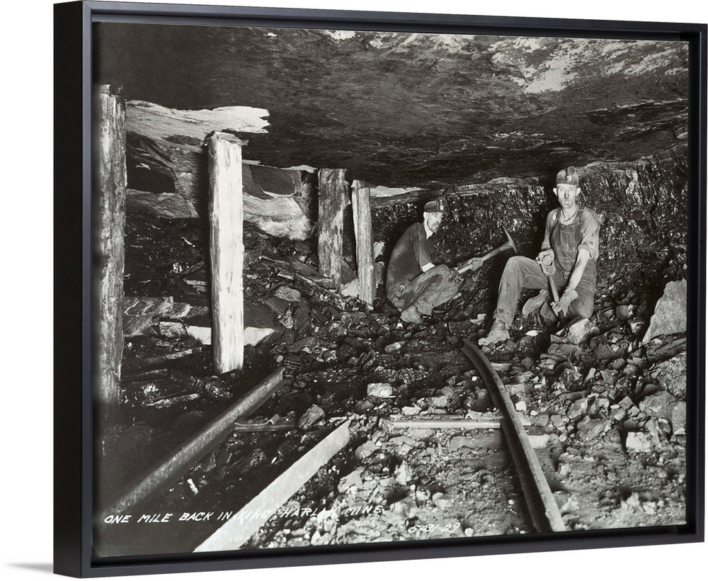 <p>Coal miners once cut coal from the face of the seam with a pick and loaded it with hand shovels. This photograph made in 1929 in the King Harlan mine in Kentucky shows methods which are now obsolete. Hand labor has been replaced by machines in all but the smallest mines.</p>