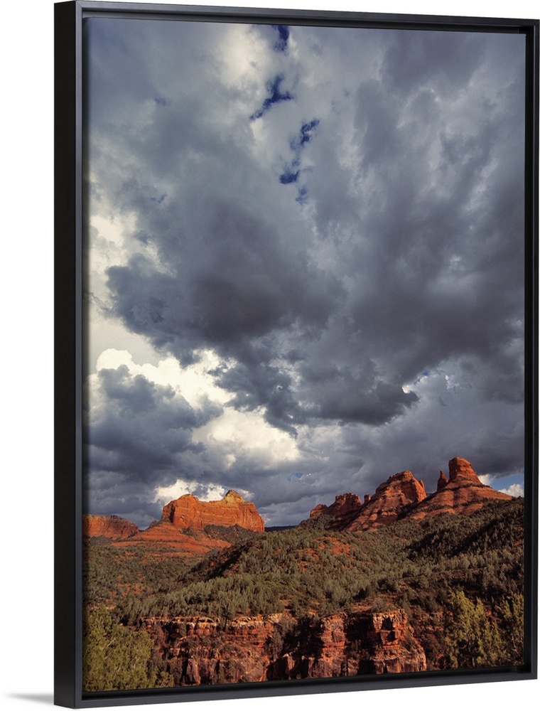 <p>USA, Arizona, Oak Creek Canyon. Menacing clouds race through the red rocks of Oak Creek Canyon in Arizona.</p>