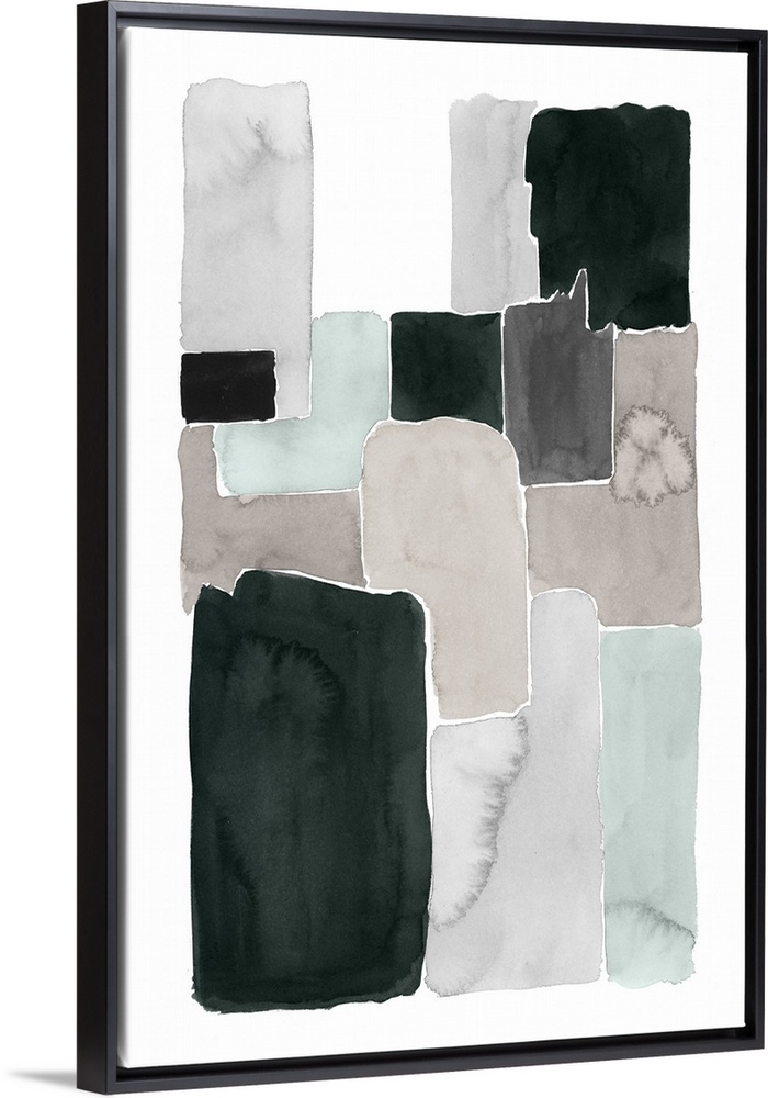 <p>Contemporary abstract painting with blocks of grey and black on a white background.</p>