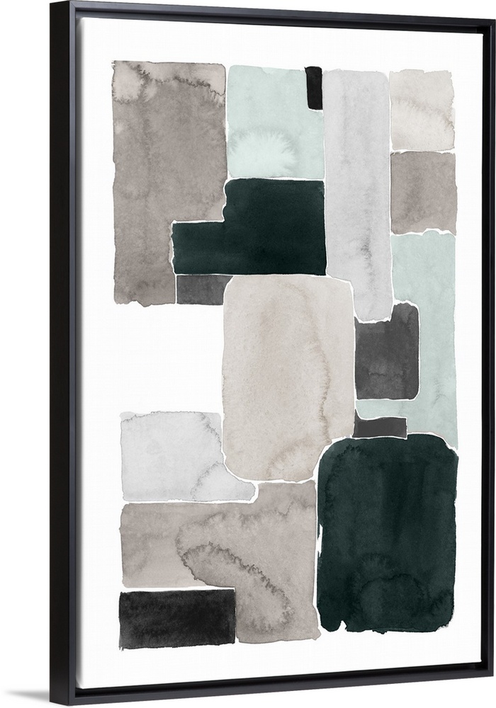 <p>Contemporary abstract painting with blocks of grey and black on a white background.</p>