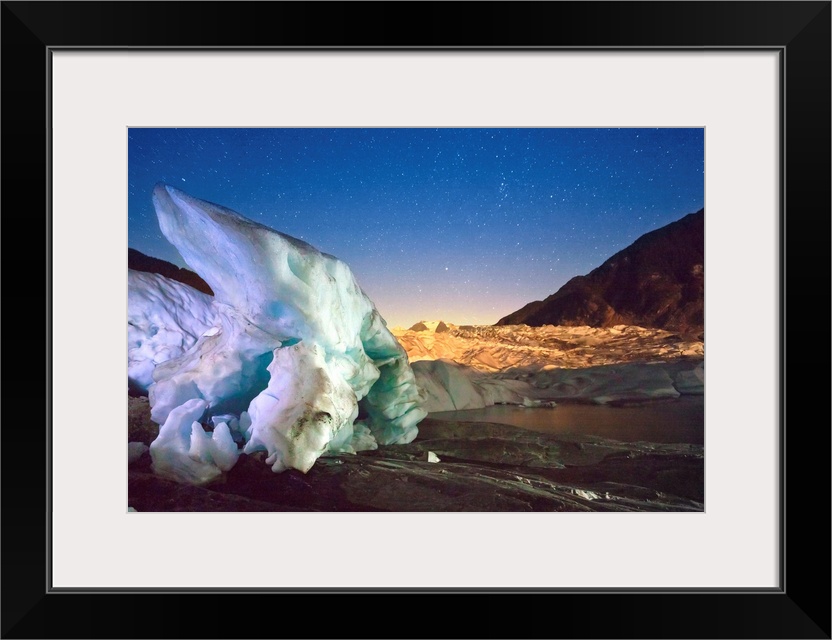 <p>Nocturnal Photography of the terminus of the Mendenhall Glacier, Light painting with flashlights, Juneau, Southcentral Alaska, USA.</p>