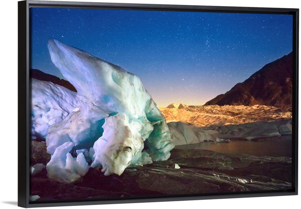 <p>Nocturnal Photography of the terminus of the Mendenhall Glacier, Light painting with flashlights, Juneau, Southcentral Alaska, USA.</p>