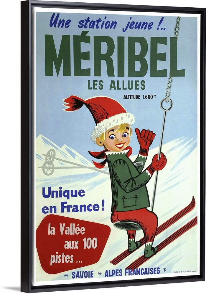 <p>Vintage advertisement artwork for Maribel Les Allues skiing.</p>
