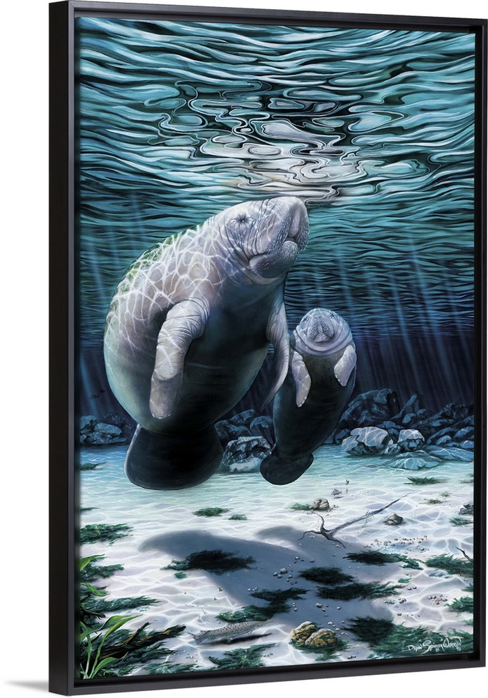 Art Blue Wall Art Contemporary Art Wildlife Painting Dann Spider Warren Wildlife Marine Life Manatee