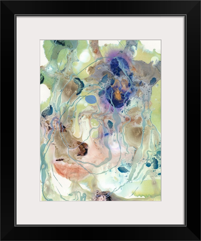 <p>Vertical abstract artwork of varies colors in a messy swirls with fine drips of paint.</p>