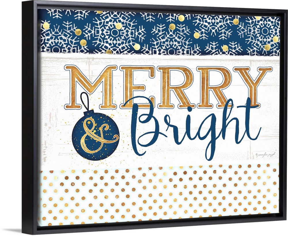 <p>This jubilant decor consists the words, "Merry and Bright" with splashes of gold color and snowflakes.</p>