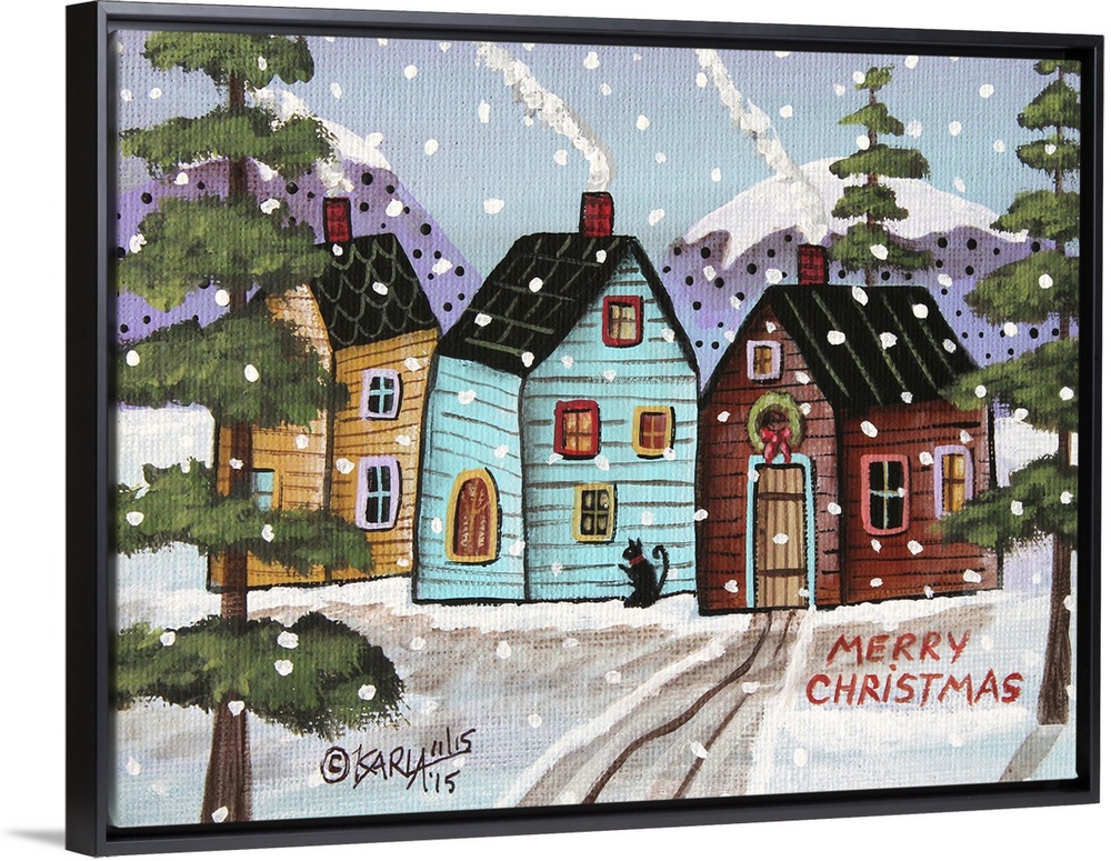 Architecture Houses Art Decorative Art Folk Art Four Seasons Winter Karla Gerard Holidays Christmas Landscapes Snowscapes Painting