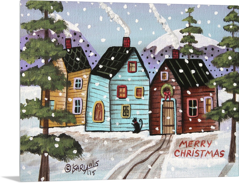 Architecture Houses Art Decorative Art Folk Art Four Seasons Winter Karla Gerard Holidays Christmas Landscapes Snowscapes Painting