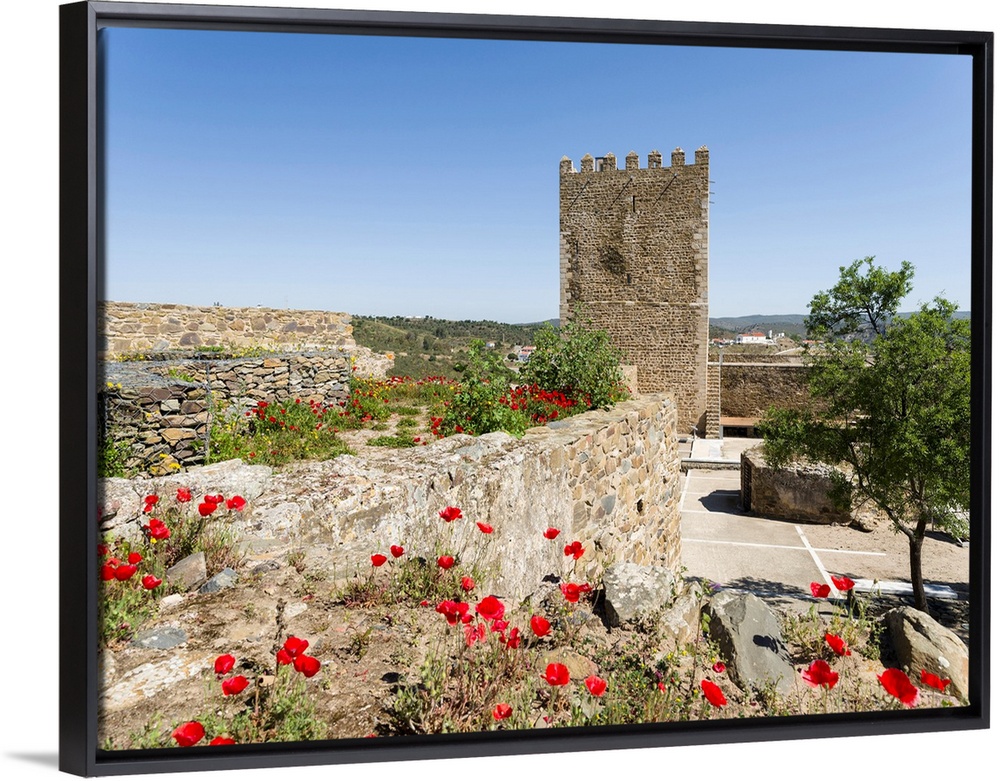 <p>The medieval castle with foudations from moorish times . Mertola on the banks of Rio Guadiana in the Alentejo. Europe, Southern Europe, Portugal, March.</p>
