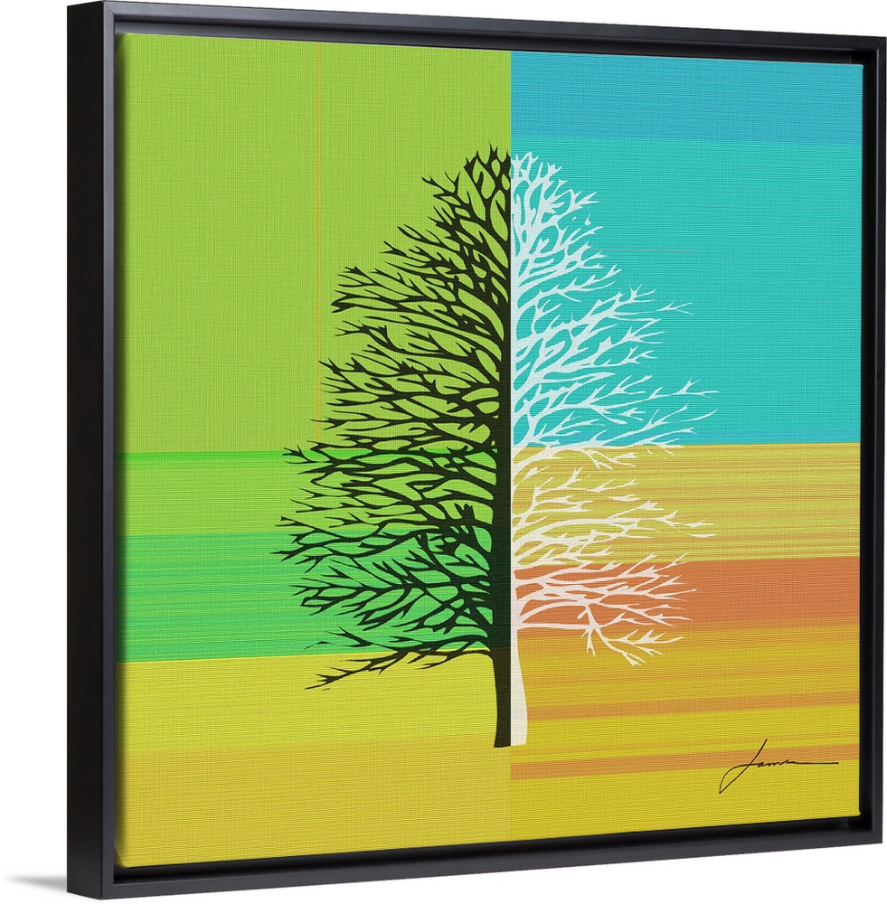 <p>An abstract tree silhouette on a brightly colored striped background.</p>