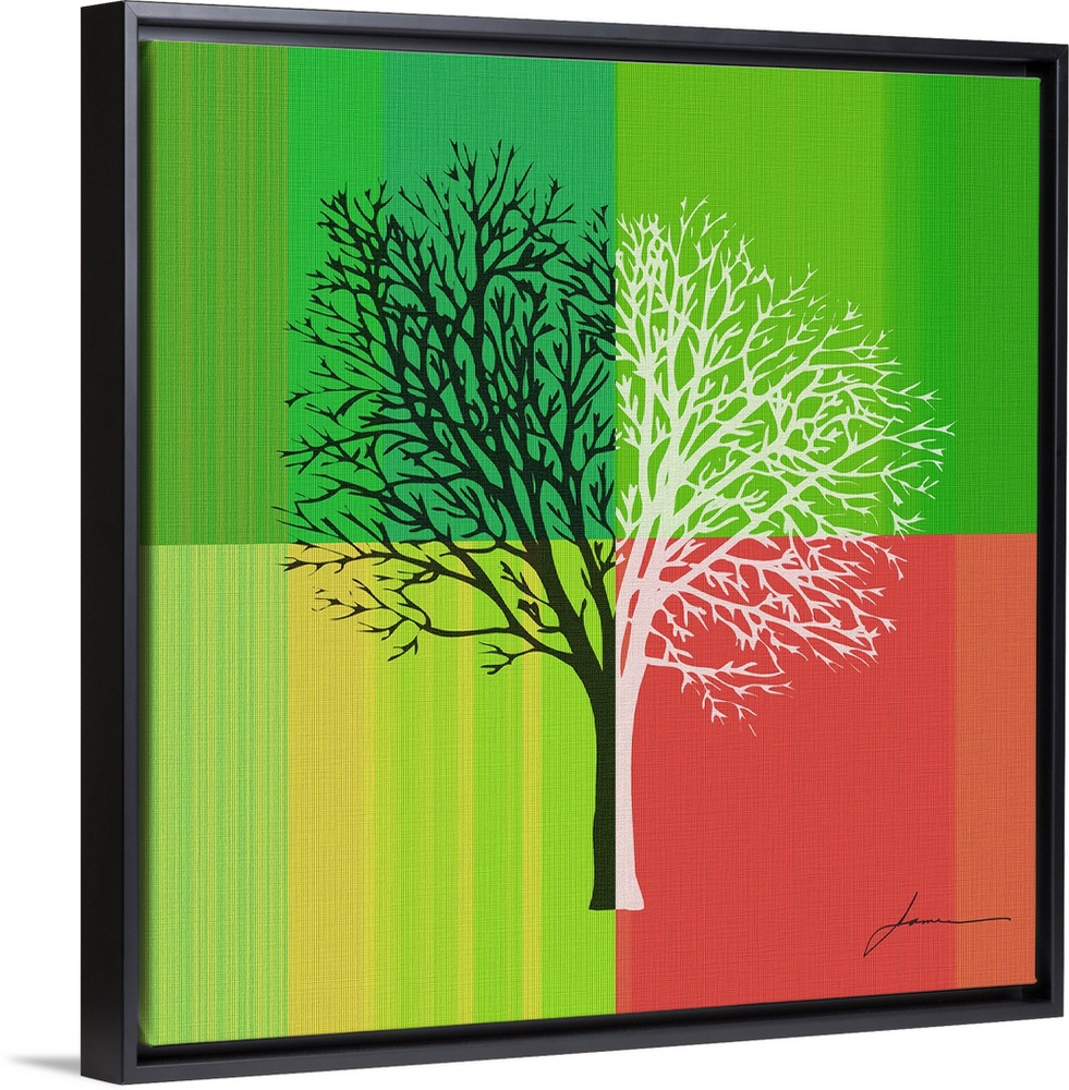 <p>An abstract tree silhouette on a brightly colored striped background.</p>