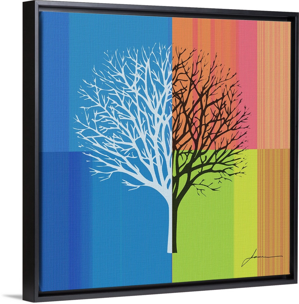 <p>An abstract tree silhouette on a brightly colored striped background.</p>