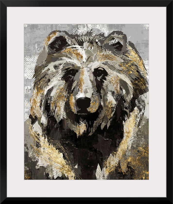 <p>A decorative image of a bear with gold accents on a gray backdrop with faded newspaper peeping throughout.</p>