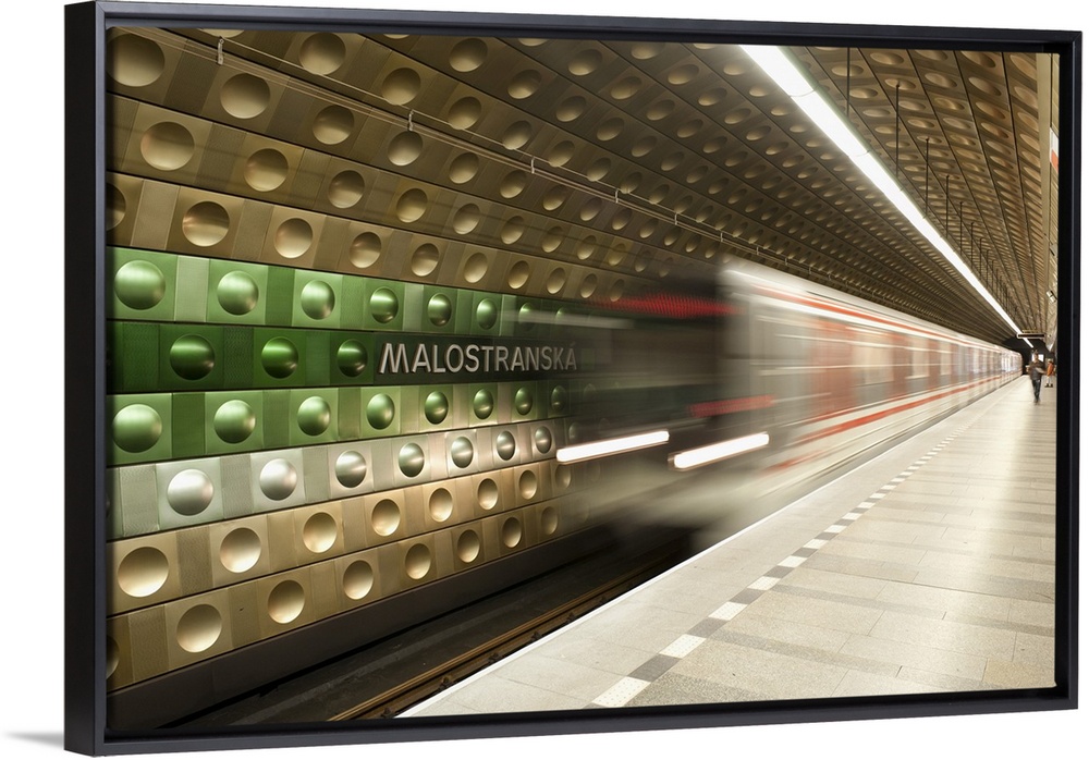 <p>Metro carriages arriving at Malostranska station, Mala Strana, Prague, Czech Republic, Europe</p>