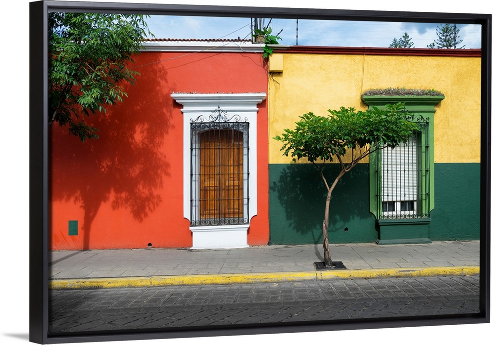 <p>Photograph of colorful facades in Mexico in red, yellow, and green. From the Viva Mexico Collection.</p>
