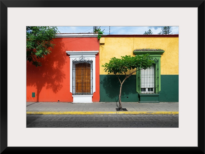 <p>Photograph of colorful facades in Mexico in red, yellow, and green. From the Viva Mexico Collection.</p>