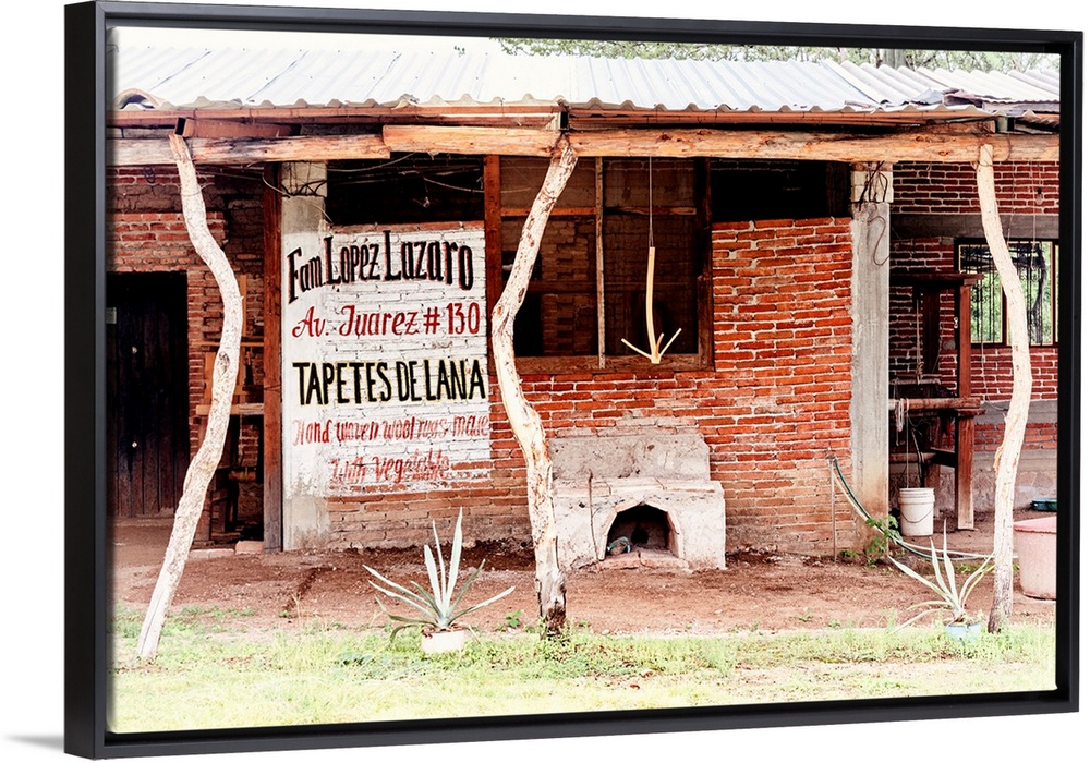 <p>Photograph of a building where woven wool rugs (tapetes de lana) are made. From the Viva Mexico Collection.</p>
