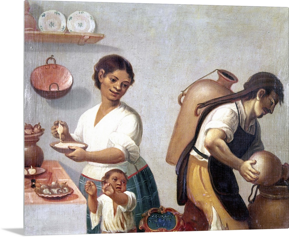 <p>A lower caste family of mixed race in colonial Mexico. Oil on cloth by an unknown artist, c1775.</p>