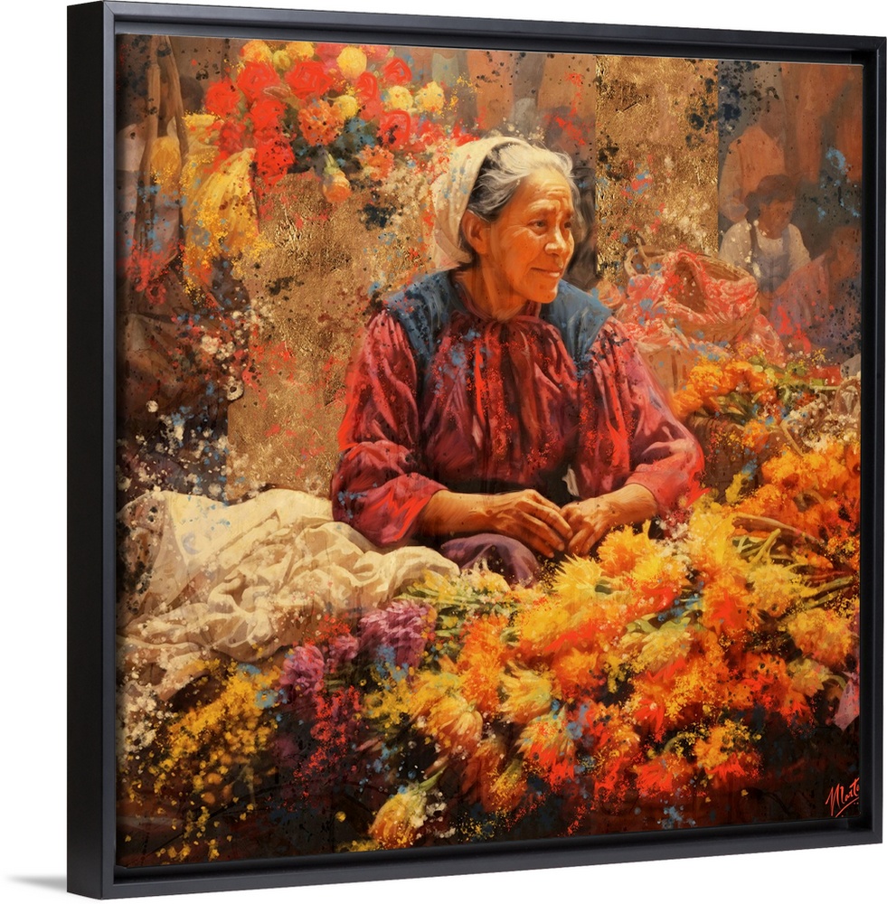 Art Transitional Contemporary Art Florals Fall Markets Orange Wall Art Painting People Mexico Marta Wiley