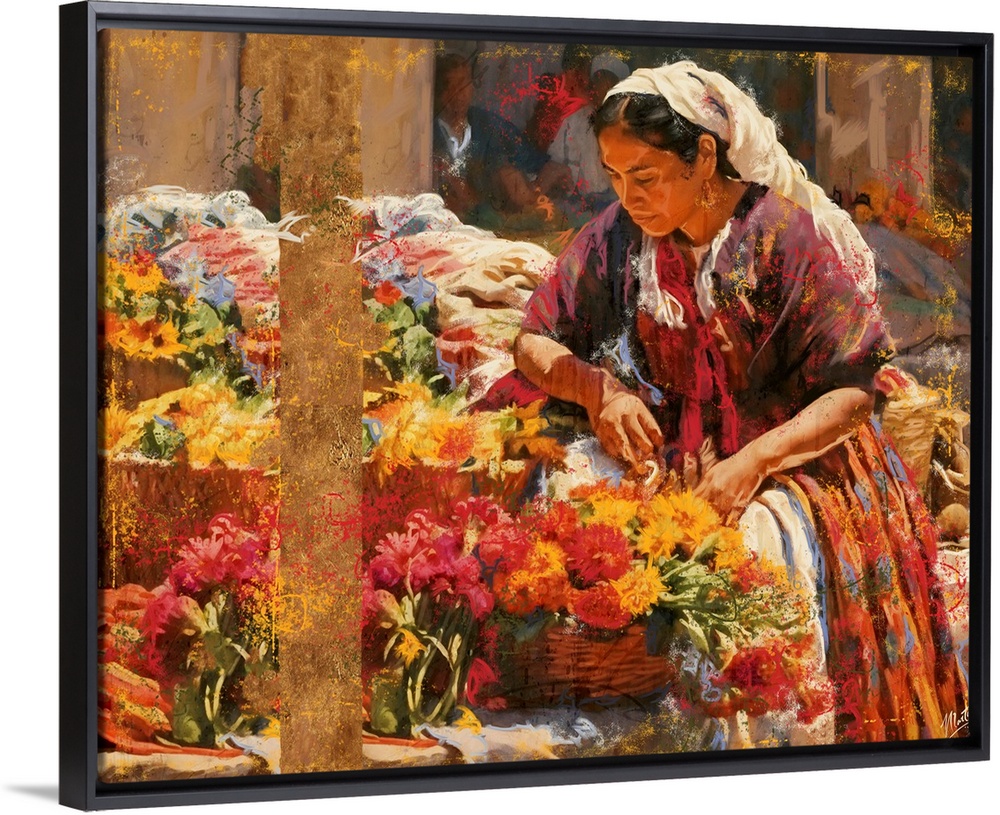 Art Transitional Contemporary Art Florals Fall Markets Orange Wall Art Painting People Mexico Marta Wiley