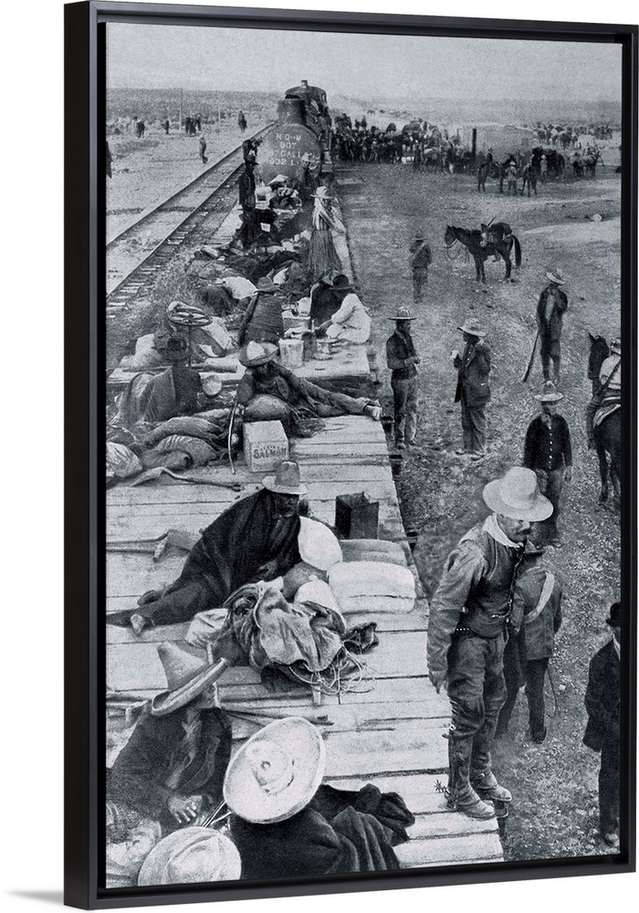 <p>Train with wounded revolutionary fighters during Mexican revolution, 20th century. Drawing. -</p>