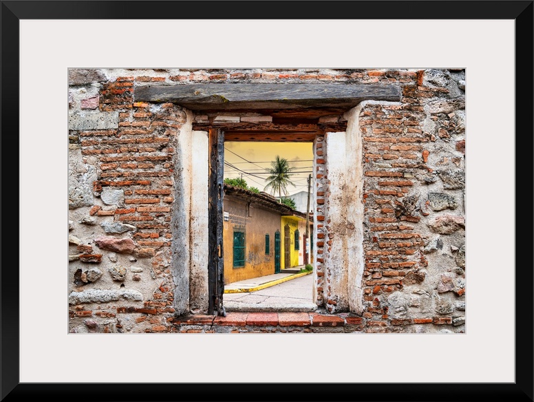 <p>View of a street scene in Mexico framed through a stony, brick window. From the Viva Mexico Window View.</p>