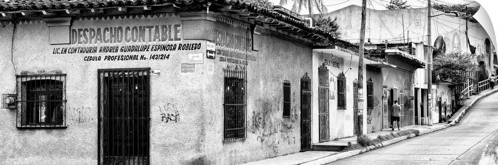 <p>Black and white panoramic photograph of an urban street in Mexico. From the Viva Mexico Panoramic Collection.</p>